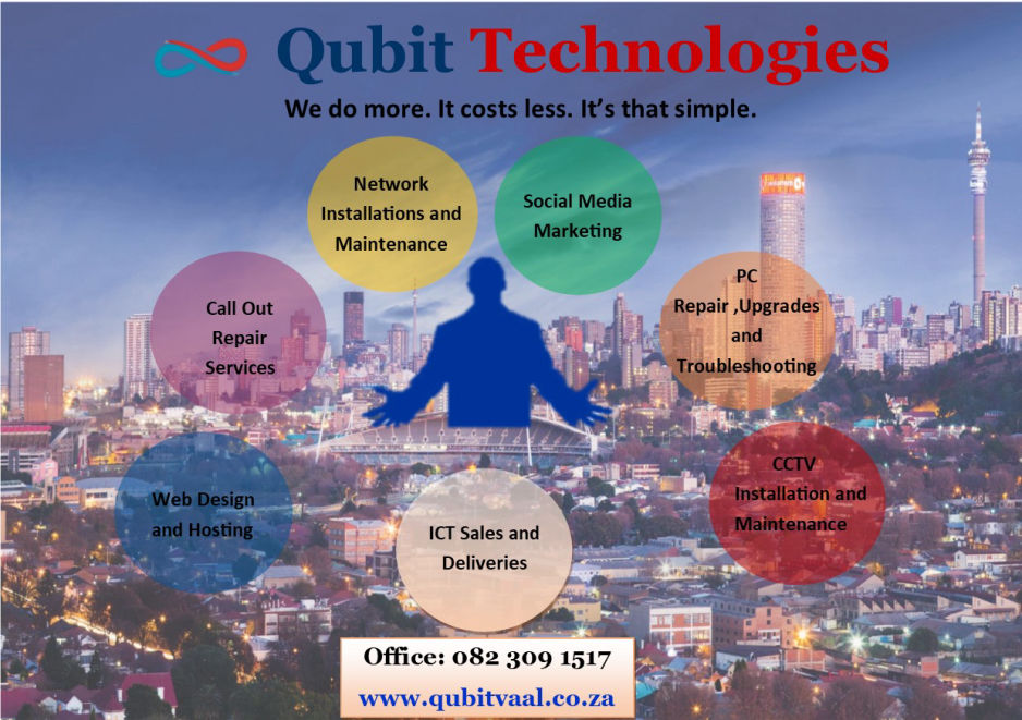 Qubit Technologies is an ICT company based in the Vaal Triangle. Our business clients are serviced throughout Gauteng, Freestate and the Limpopo province. We offer a holistic service that caters for all our clients' ICT needs. We believe in business with integrity and our clients can certainly attest to the fact that our company is reliable, honest and always there for them. At Qubit Technologies we do more and it costs our clients less. It is that simple with no stings attached.